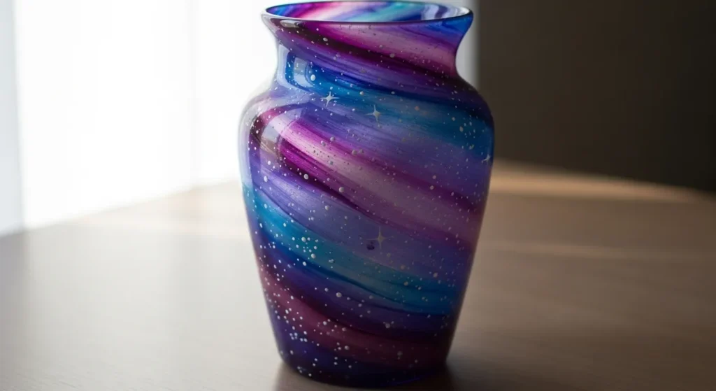 If you’ve ever found yourself staring up at the night sky in awe, this project is the perfect way to bring that magic indoors. I love this design because it’s incredibly expressive; you don’t need to worry about being precise with your lines—in fact, the more fluid and “messy” your swirls are, the more realistic the galaxy looks. It’s a fantastic way to experiment with mixing colors directly on the glass surface to see how they blend and marble. This piece would make a stunning statement on a bookshelf or a bedside table, especially when placed near a window where the natural light can make those deep blues truly shine.