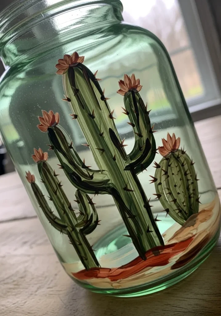 If you are into low-maintenance greenery, then this is the perfect DIY project for your home. I am a fan of how using different brush sizes can make those tiny flowers and thorns look so detailed without needing much effort. It is a creative way to dress up a storage jar for a desk or a kitchen counter, especially if you love that desert chic vibe.