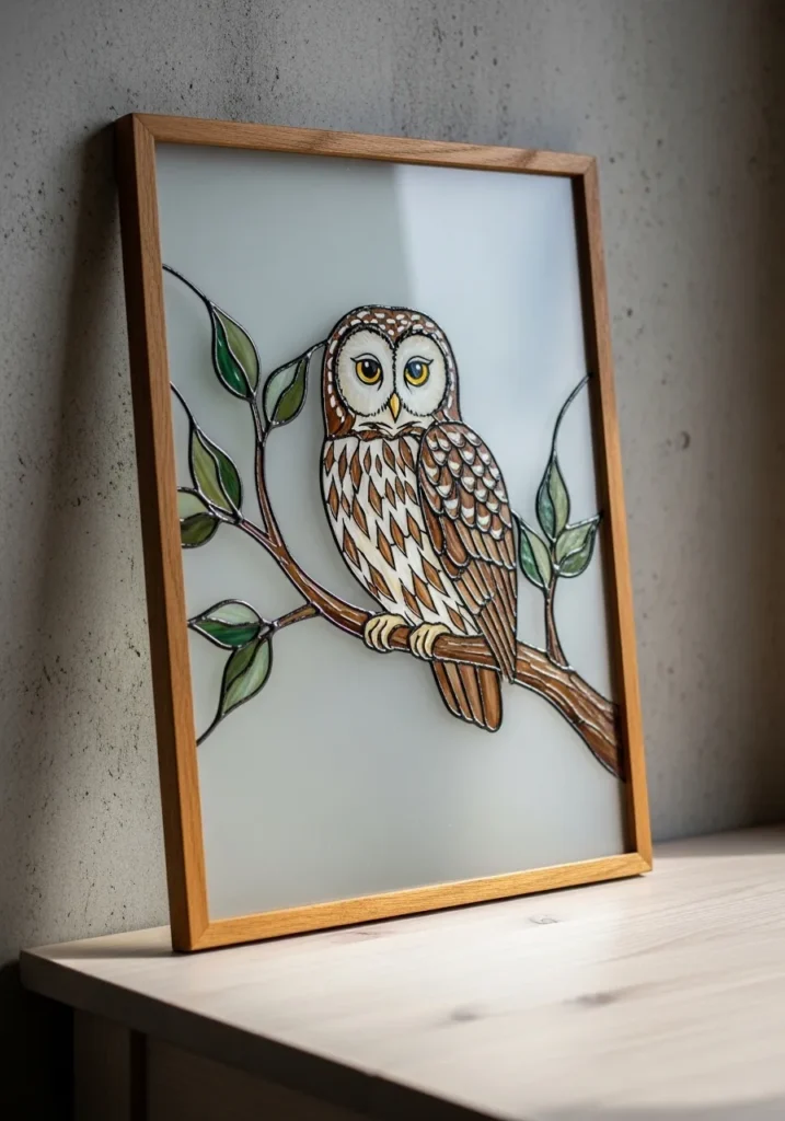 A quiet afternoon pairs perfectly with a cozy owl project like this. You can get this high-end look by using a piece of frosted glass and a fine-tip outliner to catch all those tiny feather details. I am constantly amazed at how much personality you can give a project just by adding those bright yellow eyes and a few textured paint strokes.