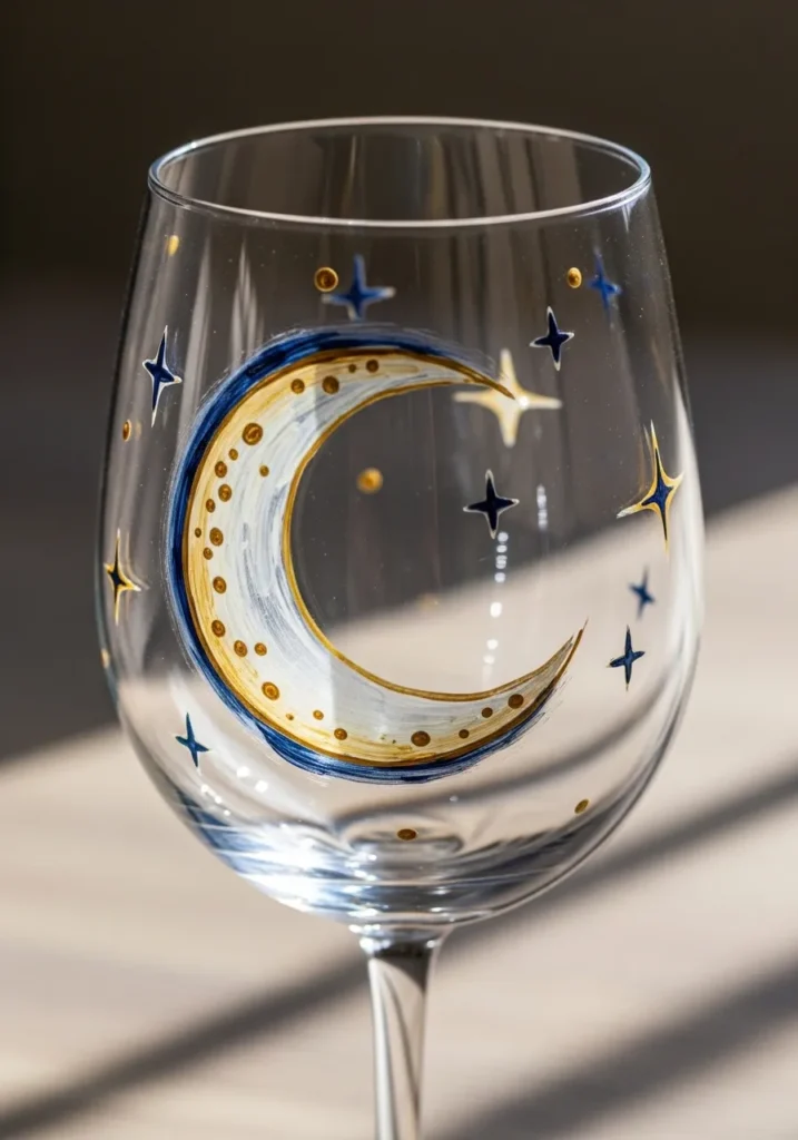 Some crafts instantly make me smile and this one definitely does. Painting a moon and a few stars feels simple but the result looks surprisingly fancy. It is the perfect little project for anyone who loves cozy night sky vibes or wants a wine glass that feels a bit whimsical.