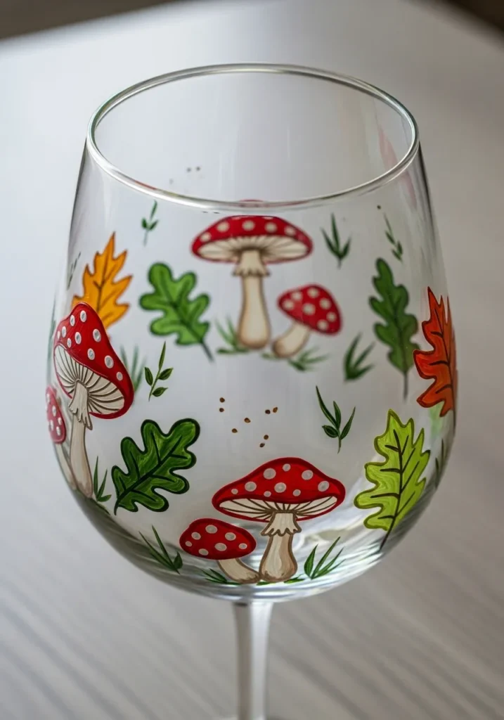 I love how creative mushroom designs can be without needing complicated painting skills. The shapes are easy to sketch and fill with color. It feels like drawing a tiny forest right on the glass. This kind of craft always reminds me of cozy craft nights when simple ideas turn into something surprisingly cute.