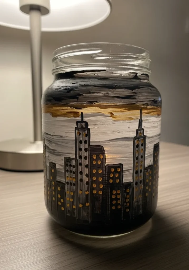 I am completely struck by how a simple jar can be transformed into such a sophisticated piece of night-inspired art. If you’re a city girl at heart or just love that urban aesthetic, then you will have so much fun playing with the different heights of the buildings to create your own unique horizon. It feels like such a clever way to experiment with light and shadow because the glow from inside really brings the whole “window” effect to life. This is the perfect project for a cozy evening in, since you can just layer on the paint and watch your very own miniature city start to shimmer and shine.
