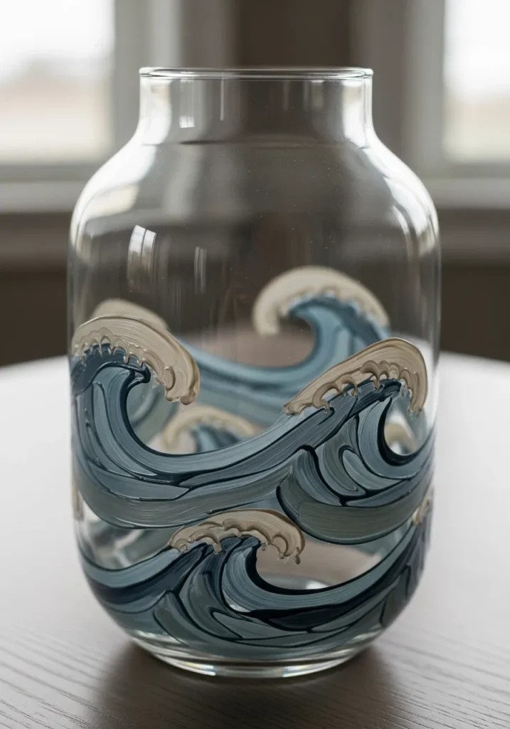 I think this project is such a creative way to bring those relaxing beach vibes into your home without needing a seaside cottage. It is incredibly fun to play with different shades of blue and see how they blend right on the glass surface. You don’t need to be a master painter to pull this off because the beauty of a wave is in its unique, organic shape. I find it so therapeutic to just follow the flow of the brush and watch the “foam” come to life with a few quick dabs of white.