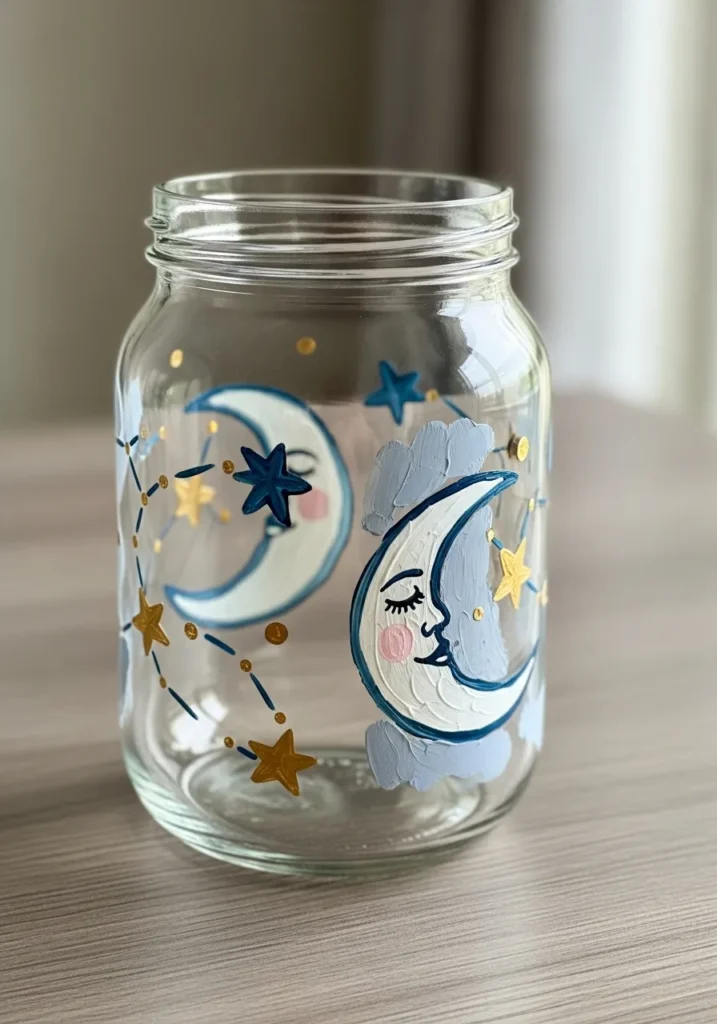 Dreamy Moon And Stars Painted Jar