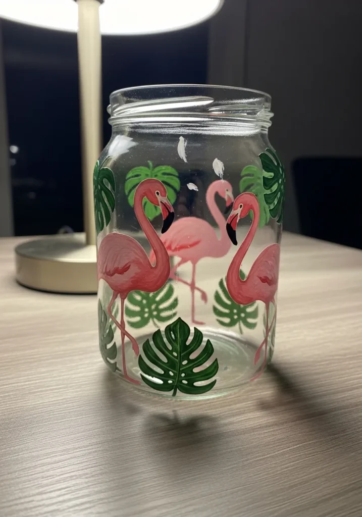 Tropical Flamingo Painted Jar
