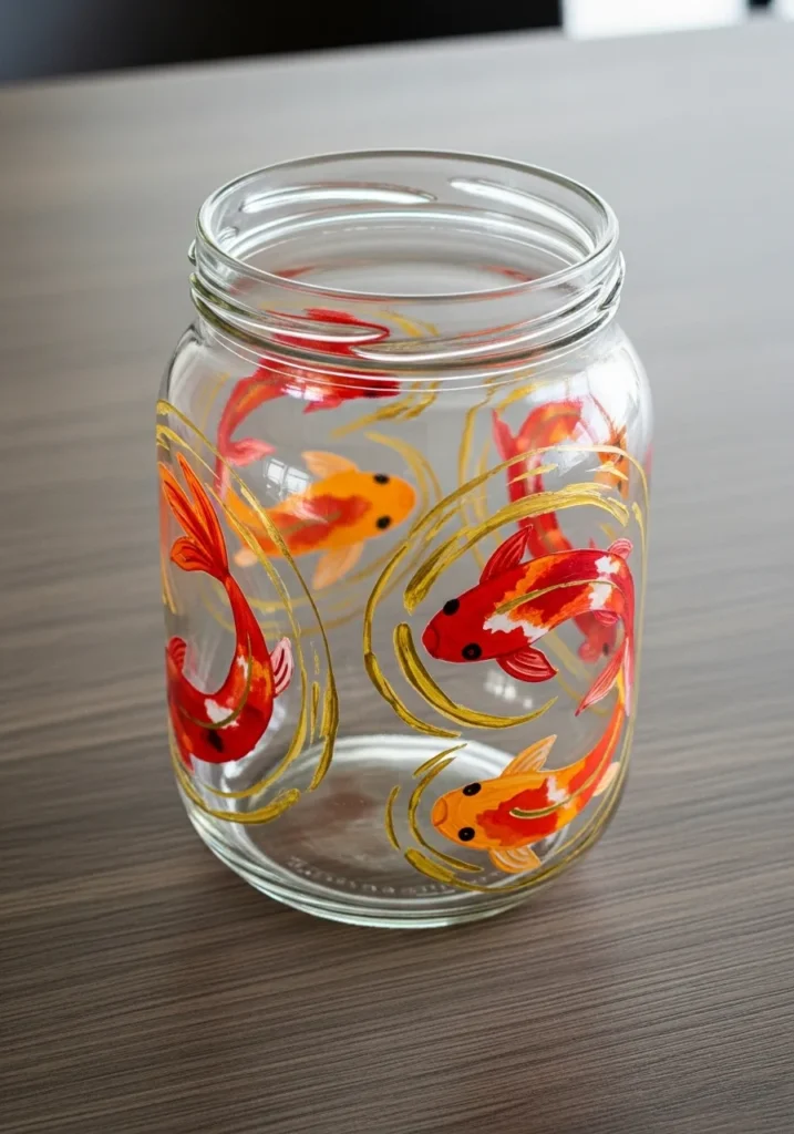 Painting fish like this is surprisingly fun because the shapes are smooth and fluid. I like how the design wraps around the jar so it looks interesting from every angle. This kind of craft feels playful and artistic at the same time. It also creates a jar that stands out beautifully on a shelf or tabletop.
