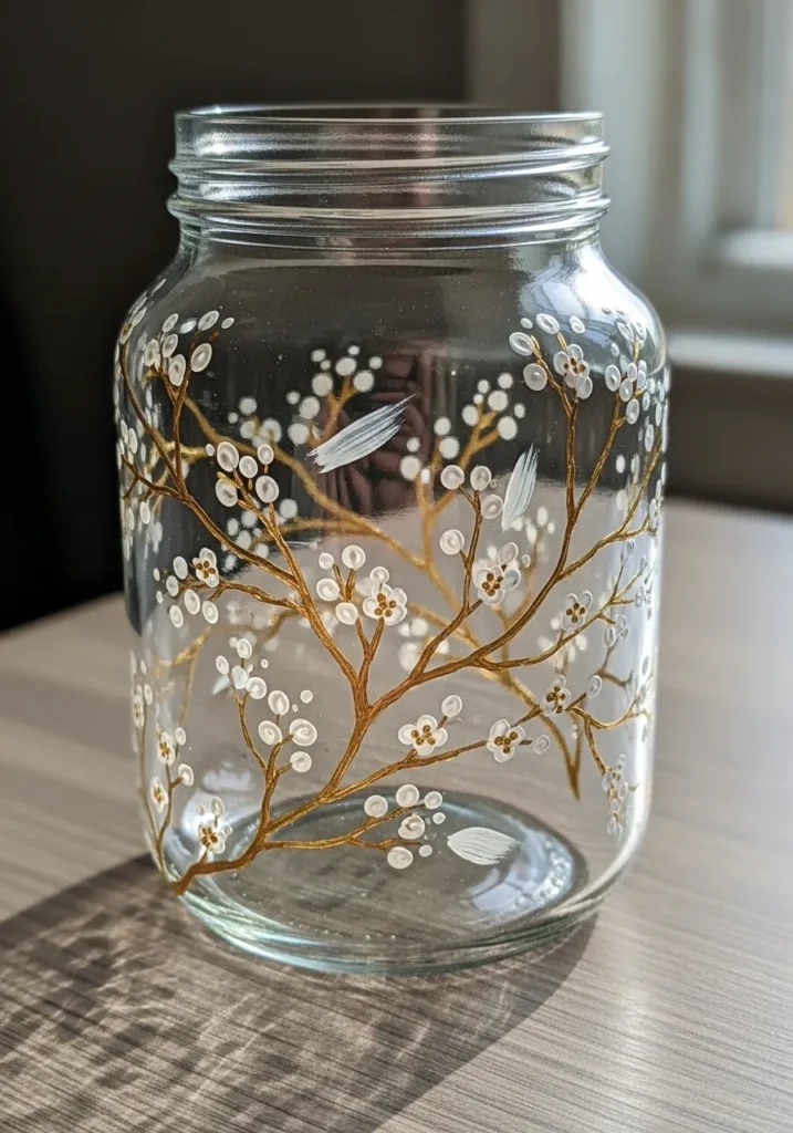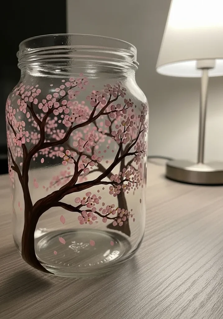Cherry blossom designs feel elegant but they are surprisingly simple to create. I enjoy dotting on the little blossoms because the jar slowly comes to life with color. This project feels calm and artistic at the same time and the finished jar looks lovely anywhere in the home.