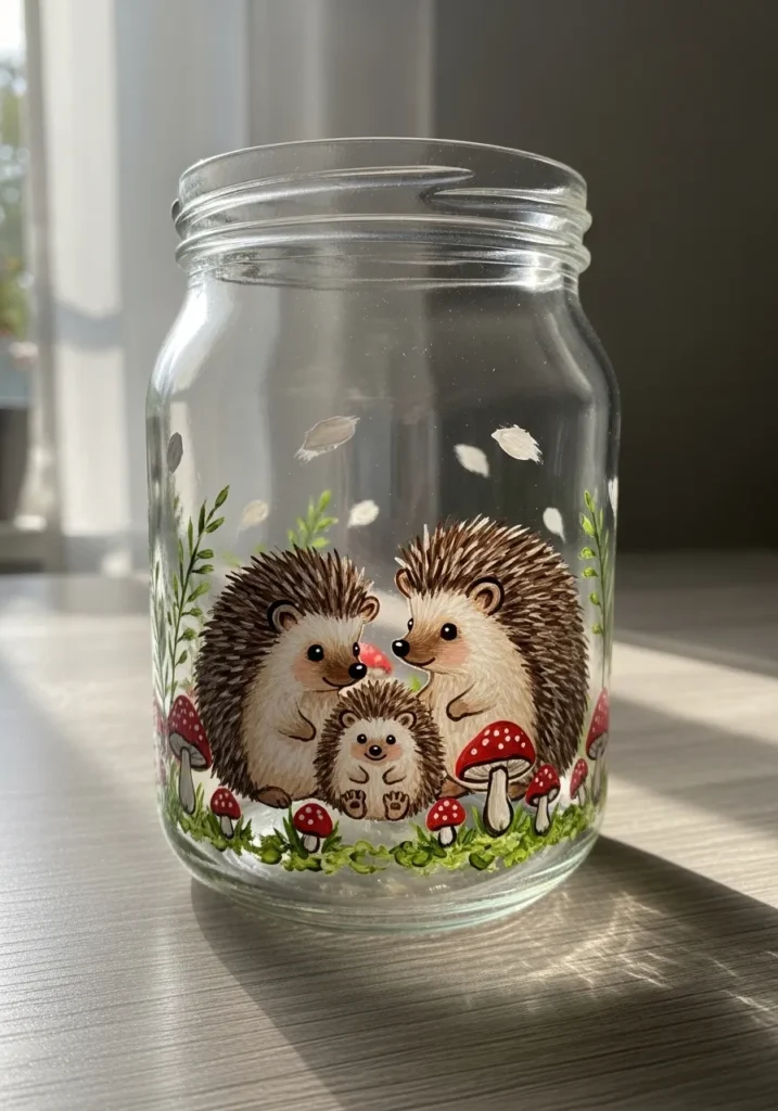 Sweet Hedgehog Family Painted Jar