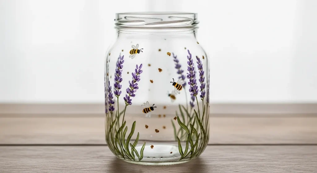 I always enjoy painting lavender because the shapes are simple and forgiving. A few tiny dots quickly turn into beautiful blossoms which makes the whole process feel relaxing. This jar has such a calm and cozy vibe and it would look lovely on a bedside table or windowsill.