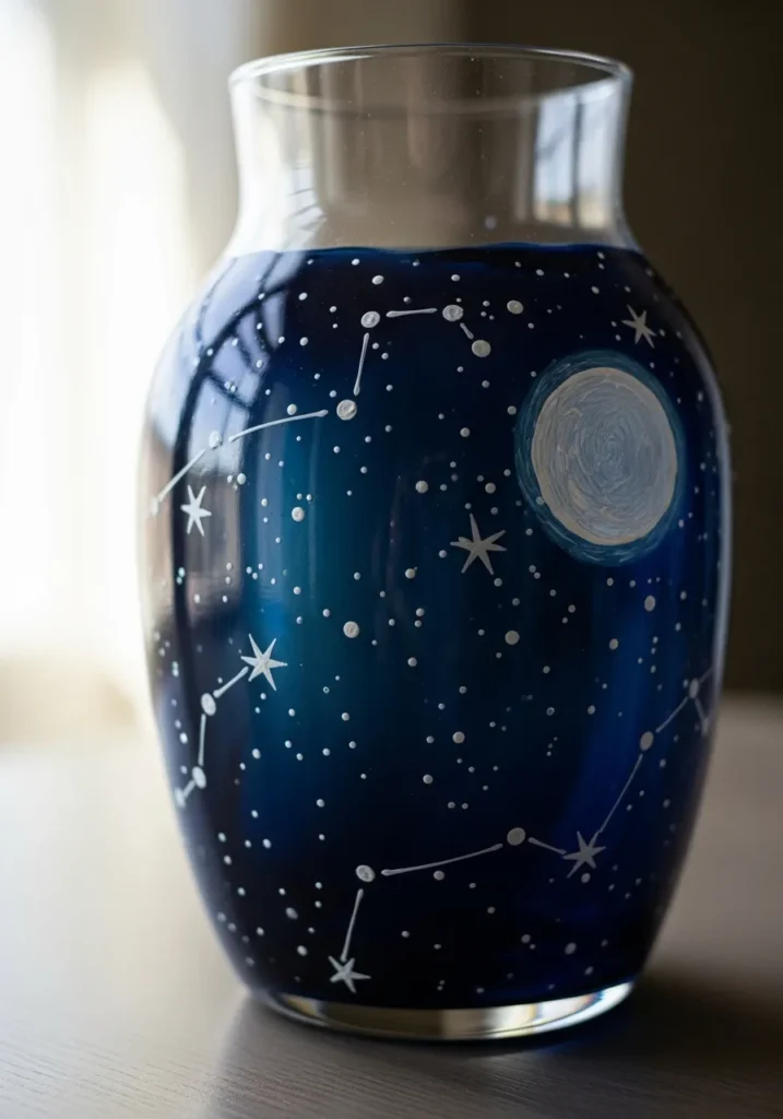 I am absolutely starstruck by this design because it feels like you are holding a piece of the universe right in your hands. If you are looking for a project that makes a bold statement, then this galaxy-inspired vessel is the ultimate choice for your next craft night. It is a fantastic way to play with tiny detailing, and you can even look up real star maps to make your vase historically or astrologically accurate. I love the idea of placing this near a window where the light can bounce off those little white stars, making the whole room feel just a bit more magical.