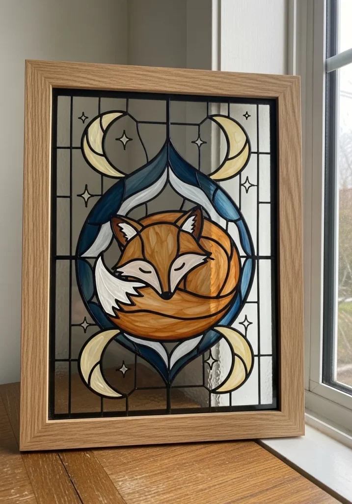 Celestial Sleeping Fox Faux Stained Glass