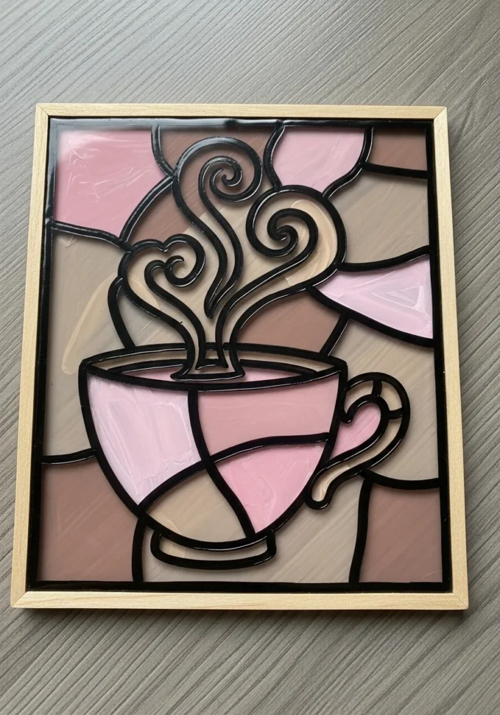 If you want to make your kitchen or coffee nook feel cozier, this project is perfect. It is a fantastic choice for beginners because the abstract background is very forgiving and lets you play with color blending without needing perfect precision. Creating this piece feels like a wonderful way to practice your lead lining since the large shapes allow for a smooth and satisfying painting experience.