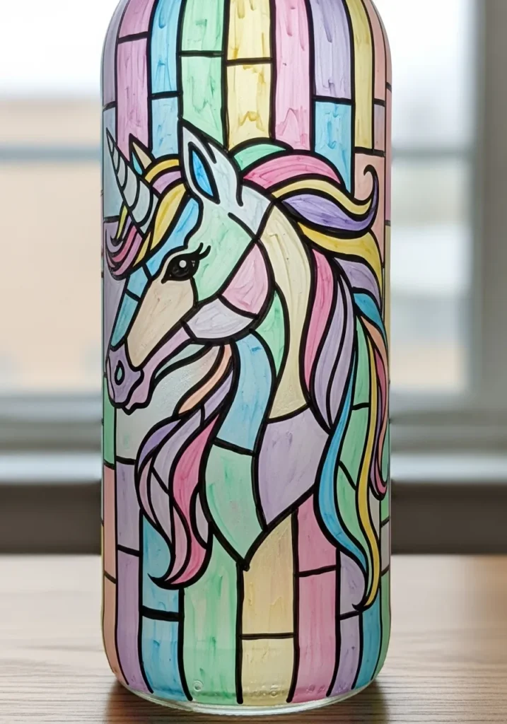 Pastel Unicorn Stained Glass Bottle