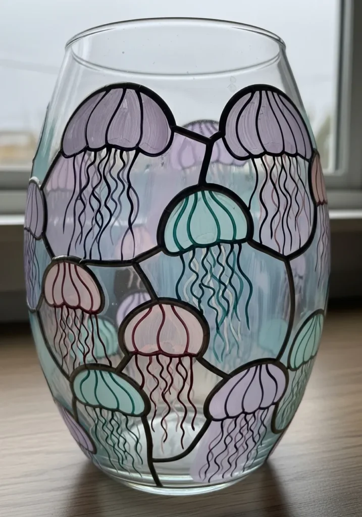 I am convinced that this is the perfect project for anyone who wants a stunning result without needing a master’s degree in fine art. The organic shapes of the jellyfish are very forgiving, so you don’t have to worry about making every line perfectly symmetrical. It is honestly such a relaxing way to spend a Saturday afternoon, and you end up with a high-end decor piece that looks way more expensive than a basic glass jar and some acrylic paint.