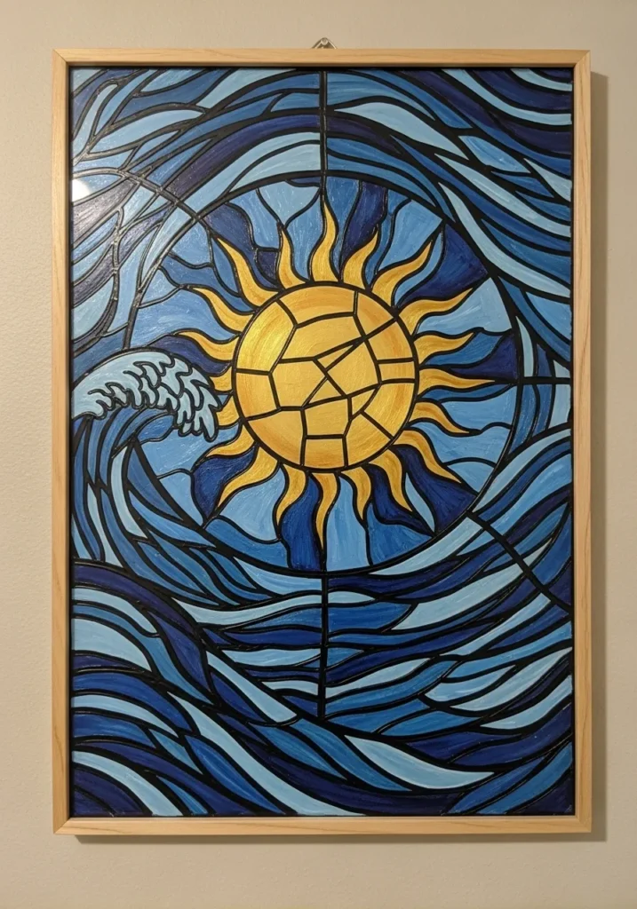 Bringing a serene coastal vibe into your home feels like a real triumph with this project. This project is a fantastic way to experiment with color gradients since you can blend different shades of blue to make the waves look like they have real depth. You can easily turn a basic glass panel into a high-end gallery-style painting that adds a sophisticated touch to any living room or bedroom wall.