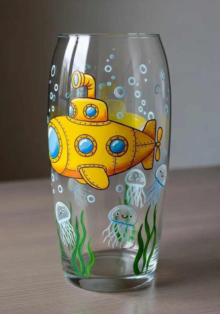 I think this is such a fun project because it brings back all those nostalgic childhood vibes of sea adventures. If you’re into quirky home decor or want a unique way to brighten up a bathroom vanity, this submarine design is a total winner. You don’t need to worry about being a professional illustrator because the simple, rounded shapes are very beginner-friendly and easy to master. It is a great way to spend an hour or two getting creative with bright colors, and I promise it will make you smile every time you take a sip.