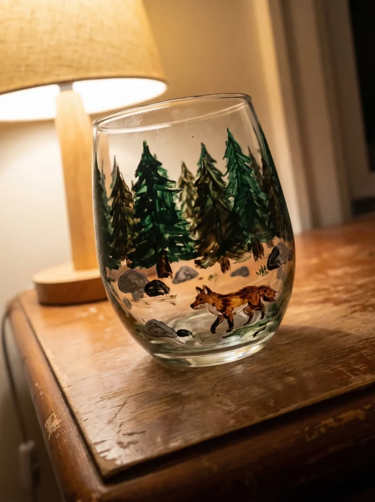 If you’re a fan of the great outdoors, this project is such a fun way to bring that cabin-in-the-woods energy to your kitchen or bedroom. I am really impressed by how a few simple dabs of green can instantly look like a sprawling pine forest once you get the rhythm down. You don’t have to be a master painter to make this work because the rougher the brushstrokes are on the trees, the more realistic they actually look. It is a fantastic gift idea for anyone who loves nature or just wants a unique glass for their evening relaxation time.