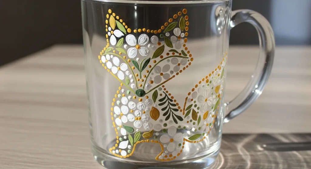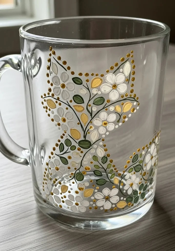 If you’re looking to upgrade your morning coffee routine, this project is a fantastic place to start. I am a big believer that anyone can master the “dotting” technique used here since it mostly involves a steady hand and a bit of patience. You can easily trace a simple outline on the inside of the glass and then fill it in with your favorite floral motifs. It is such a rewarding way to turn a basic thrift store find into a custom piece that looks incredibly high-end.
