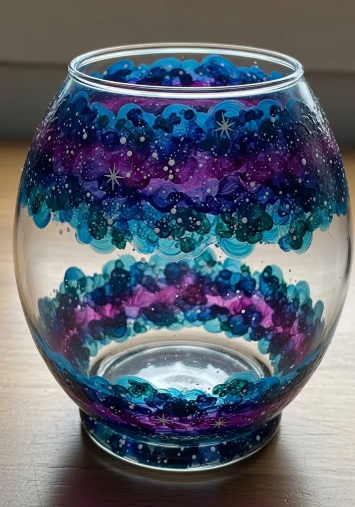 I love using a tapping or swirling motion with a brush because it is such a stress-free way to blend these bold jewel tones. You don’t have to worry about creating perfect shapes when you are painting a galaxy, since every swirl and dot just adds to the magical cosmic vibe. It is a brilliant way to transform a simple fishbowl or candy dish into a sparkling piece of art that looks like it belongs under the stars.