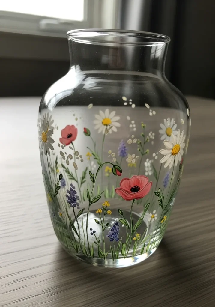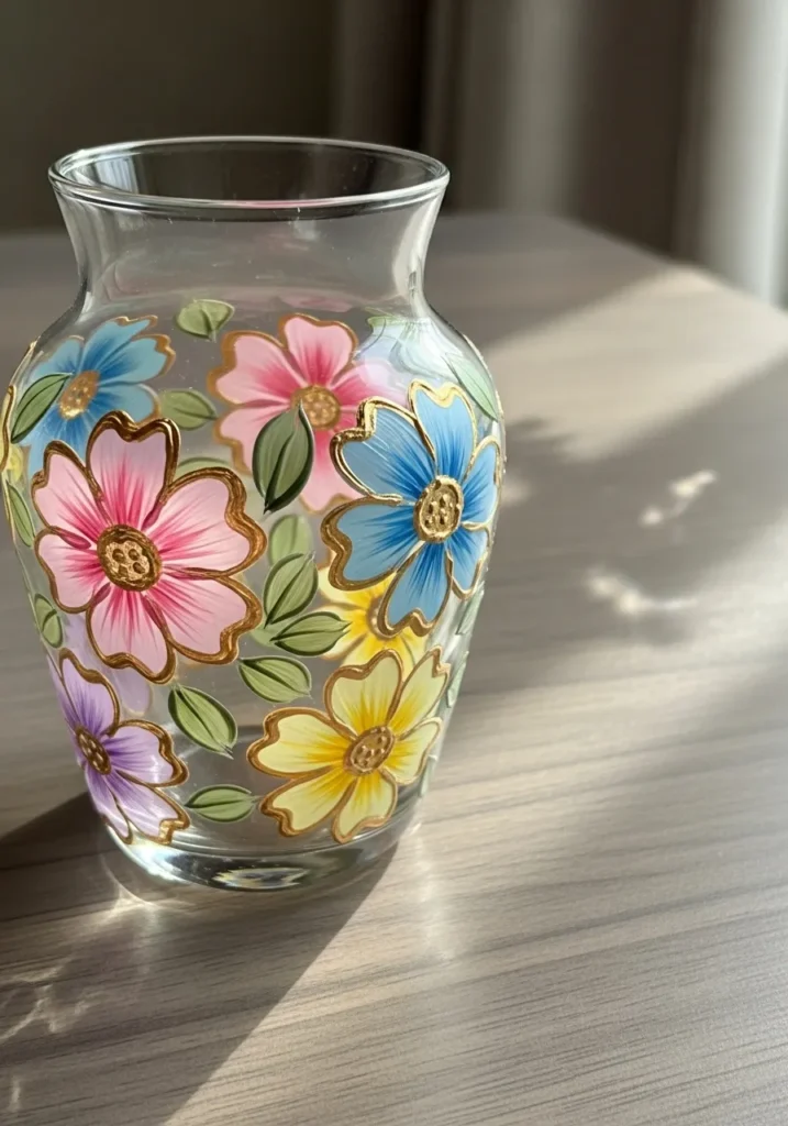 I love how even a plain glass or ceramic vase can feel completely transformed with just a few strokes of paint.