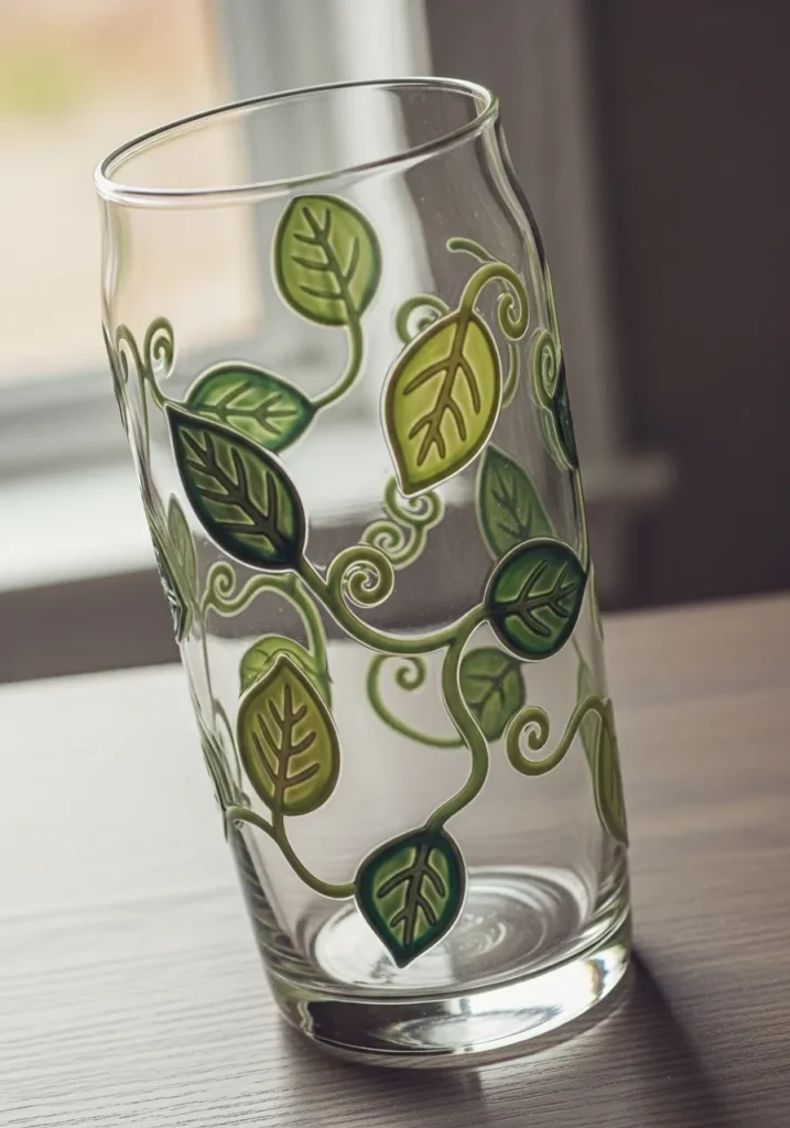 I absolutely love this design because it brings a sense of organic growth and movement to a simple glass piece. If you are looking to add a touch of nature to a space but want something more structured than a bouquet, these “perpetual” vines are a perfect choice. The contrast between the bold greens and the delicate, curly tendrils creates a look that is both modern and whimsical. It’s a wonderful project for practicing steady line work, and the result is a sophisticated piece that looks just as beautiful empty as it does holding a single, minimalist stem.