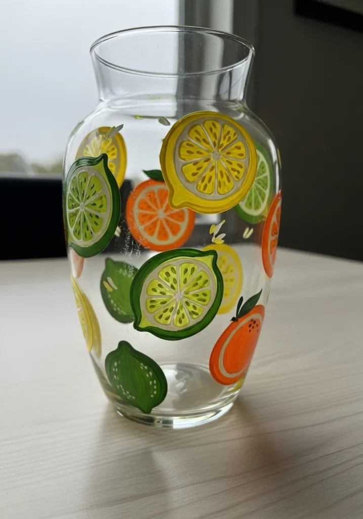 I think this is such a fun, high-energy project because it instantly turns a plain vase into a piece of pop art. If you have a sweet tooth or want to add a bit of kitschy charm to a kitchen or a party table, this candy theme is a total treat to create. It’s a great way to play with bold, saturated colors and circular patterns without needing to worry about perfect realism. I love how the bright palette makes the whole piece feel like a celebration, and it would look absolutely fantastic filled with actual colorful candies or some bright, round pom-pom flowers.