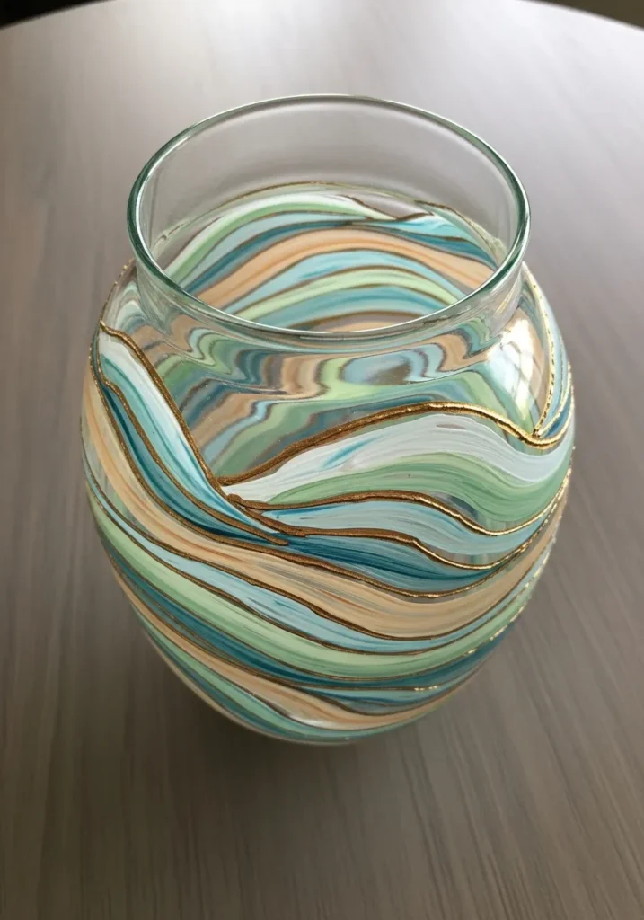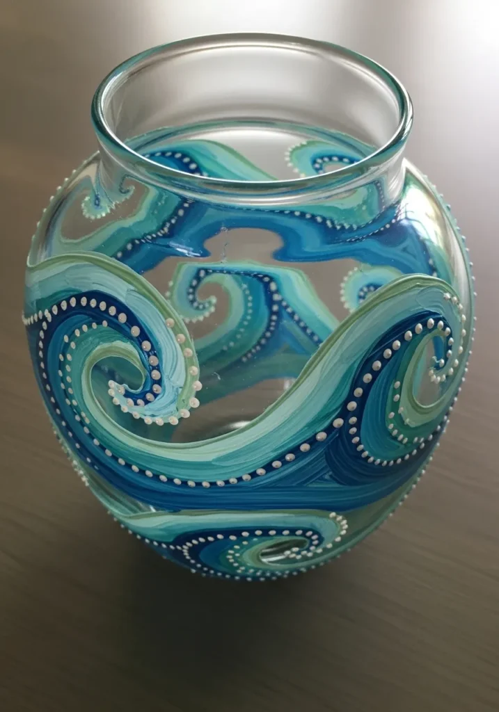 I think this wave design is a total blast to try because it is all about letting go and embracing fluid movement. If you’re someone who gets a bit stressed out by perfect lines, then you will love how messy and expressive these waves can be. I find that mixing the different blues directly on the glass creates these lovely, unexpected gradients that look like real water. It is a fantastic way to experiment with texture, and you can basically just “go with the flow” until you’re happy with the result. Plus, it makes any shelf look like a summer vacation.