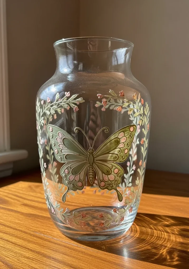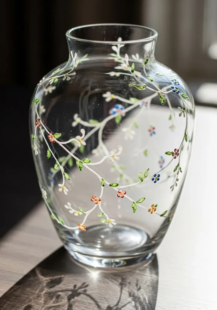 I am absolutely head over heels for this design because it is the definition of “less is more” in the best way possible. If you are looking for a project that feels sophisticated but doesn’t require filling every inch of the glass, then this climbing vine is your new best friend. I love how it looks like a sketch come to life, and the small scale of the flowers makes it very approachable for anyone with a steady hand. It is such a rewarding process to watch the vines “climb” as you paint, and it results in a piece that looks like a high-end heirloom.