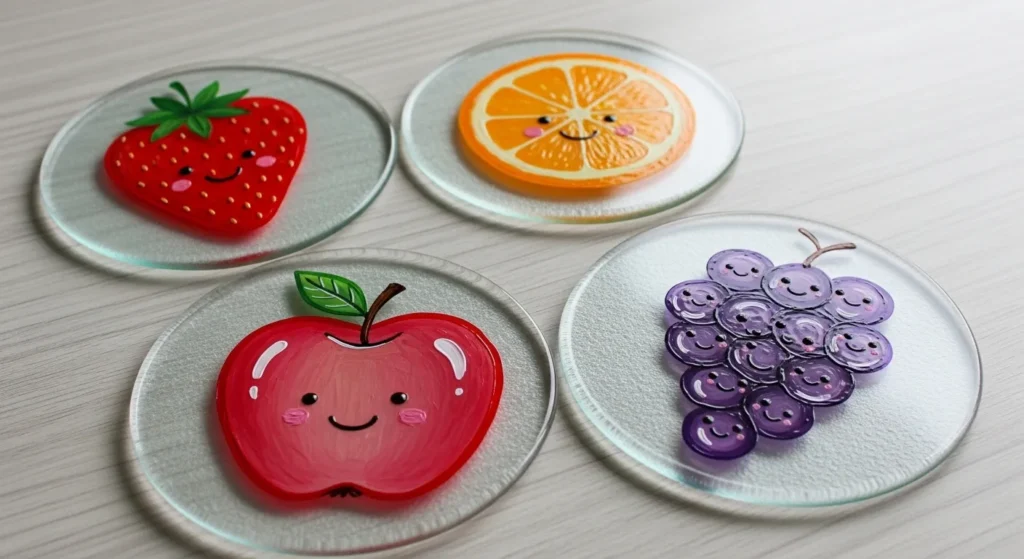 Cheerful Painted Fruit Glass Coasters