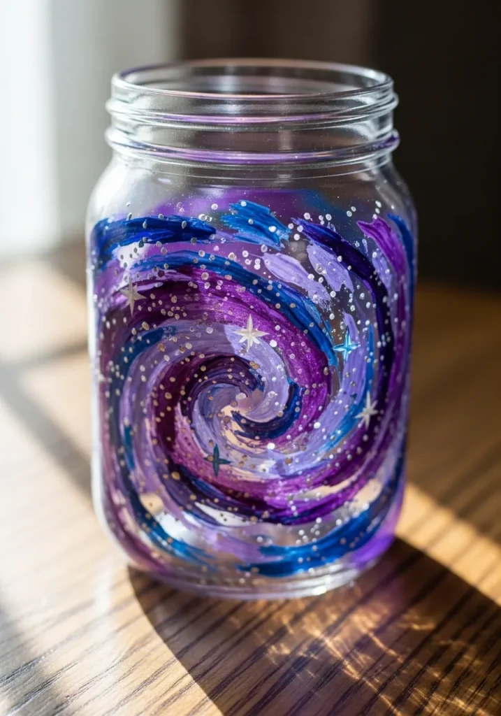 I am captivated by how this project turns a basic kitchen jar into a mystical piece of decor. It is such a clever way to play with blending different jewel tones without needing to be an expert artist. The swirling technique is actually quite forgiving and makes for a relaxing afternoon craft session. Using this as a candle holder or a unique pencil cup would instantly level up your desk setup.