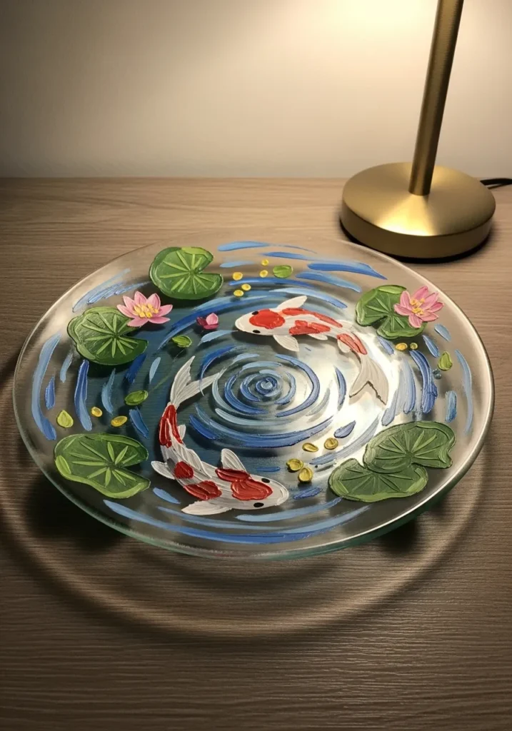 Serene Koi Pond Glass Platter