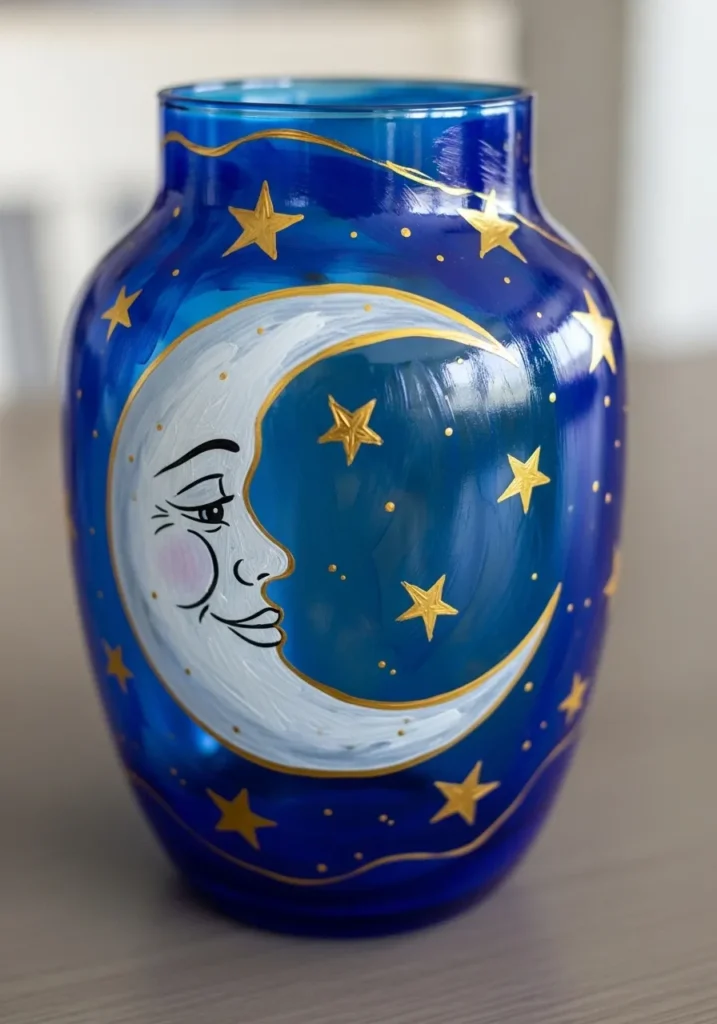 I think this design is such a blast to create because it lets you play with a celestial theme that never goes out of style. If you’re into that dreamy dark academia or mystical aesthetic, this project is a total winner. You don’t have to be a master illustrator to get those stars looking great since their simple shape is so easy to replicate with a small brush or even a paint marker. It feels like you are painting a tiny universe, and the result is a bold statement piece that looks stunning even when it isn’t holding flowers.