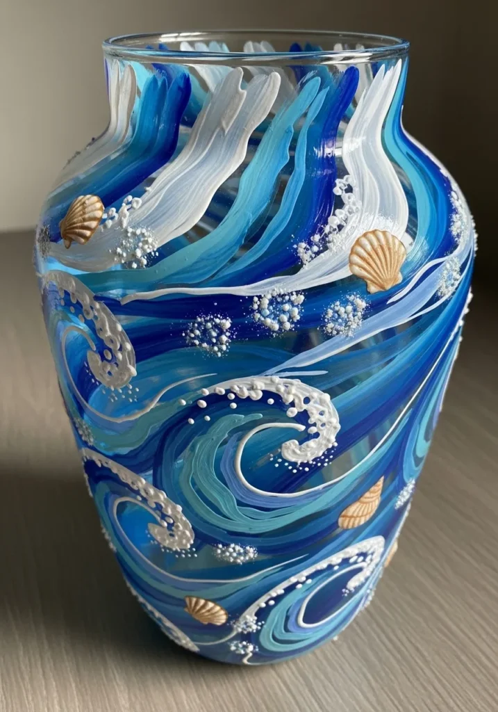I think this project is a total blast because it really lets you lean into that messy and expressive painterly style. You don’t need to worry about being precise since the beauty of the ocean lies in its wild and unpredictable shapes. If you are looking for a way to use up different shades of blue in your craft bin, this is the perfect excuse to mix them all together for a beautiful gradient effect. It feels so meditative to swirl the colors around the glass and the end result looks like a professional gallery piece that captures a little bit of beachy magic.