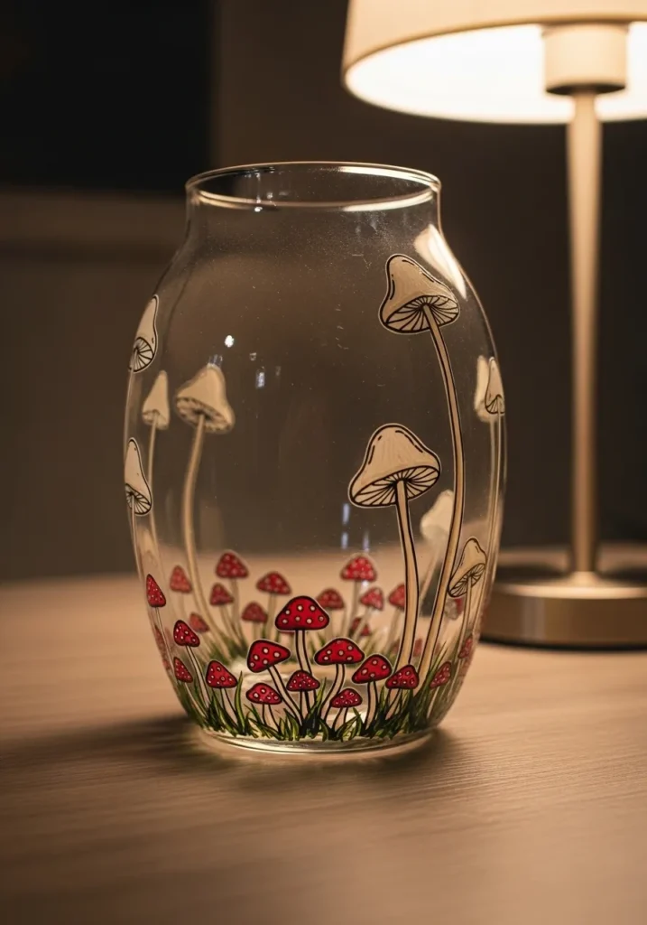 I am completely obsessed with this mushroom trend because it adds such a cute and earthy touch to any shelf. If you are a fan of that forest core look, this project is a total dream to put together. You can really let your imagination run wild with the different sizes and shapes of the fungi, since nature is never perfectly uniform anyway. It is a super relaxing way to practice your fine line work with a small brush, and the result is a charming little woodland world that looks amazing even when the vase is empty.