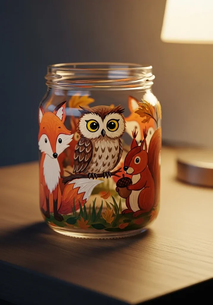 I find this project really rewarding because it allows you to tell a little story through your art. If you are a fan of nature or whimsical nursery decor, painting these forest creatures is a wonderful way to practice blending different shades of brown and orange. It is such a fun and creative way to turn a basic jar into a piece of art that looks like it belongs in a boutique.