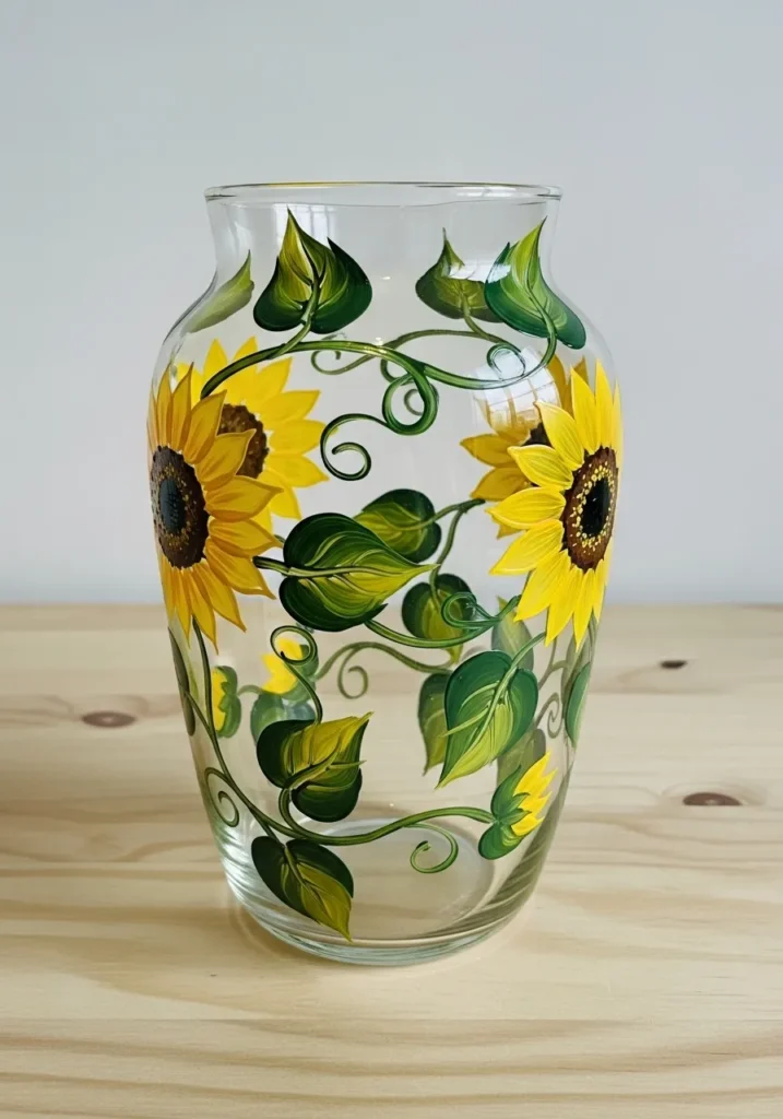 I find that painting sunflowers is a total joy because the petals don’t have to be perfectly symmetrical to look amazing. If you are looking for a project that feels more like an art piece, this is a fantastic choice for your first vase. You can just let the brush flow to create those whimsical curly vines, which makes the whole process feel very free and therapeutic. It is a lovely way to bring a permanent pop of sunshine into any room in your home.