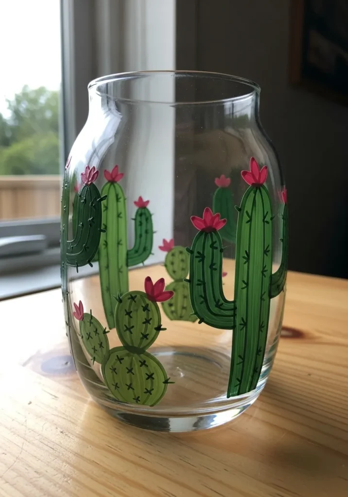 I find that painting cacti is one of the most rewarding projects for beginners because their organic shapes are so easy to replicate. If you’re into the boho or desert aesthetic, this is a perfect way to customize a plain vase with very little effort. It is a wonderful feeling to finish a piece that looks this trendy and professional using just a few basic colors and simple brushstrokes.