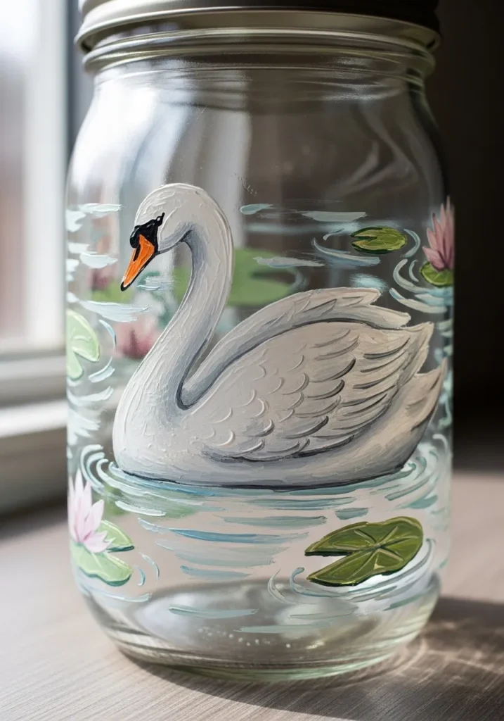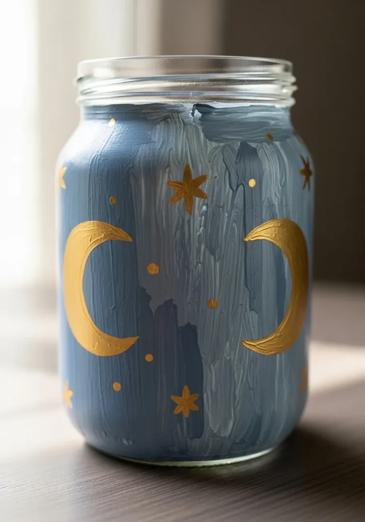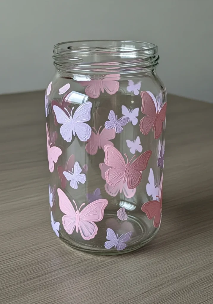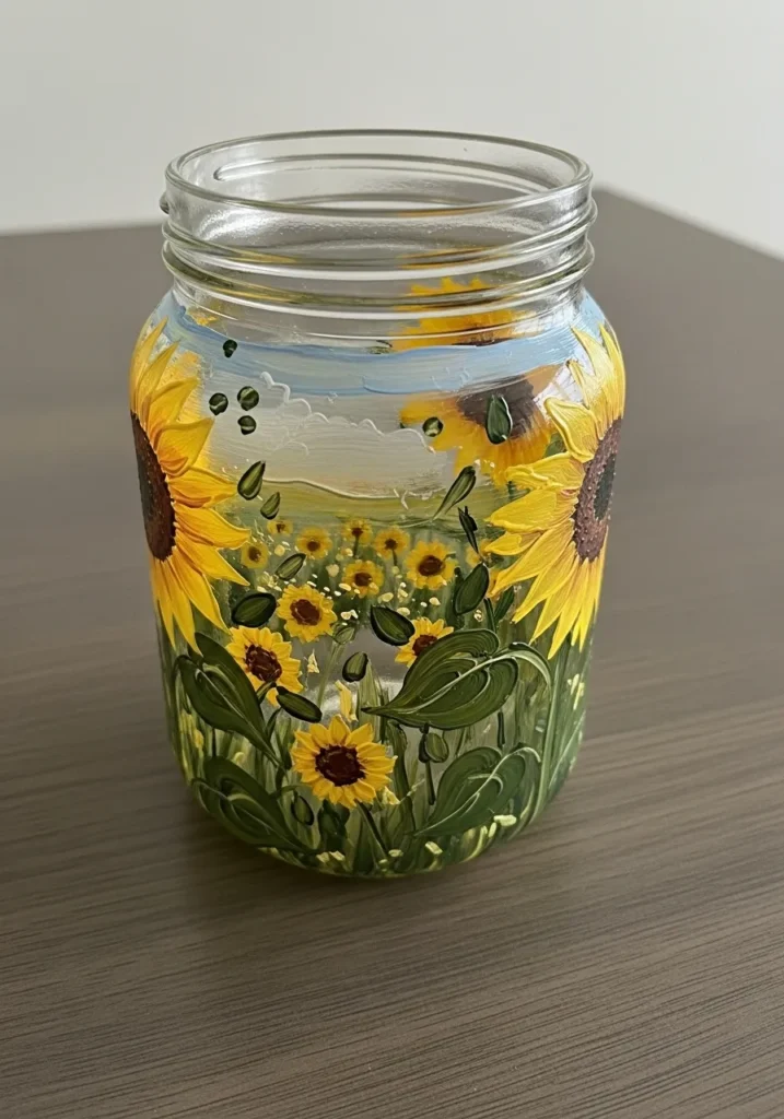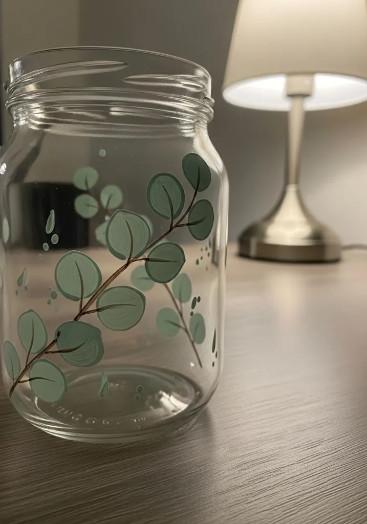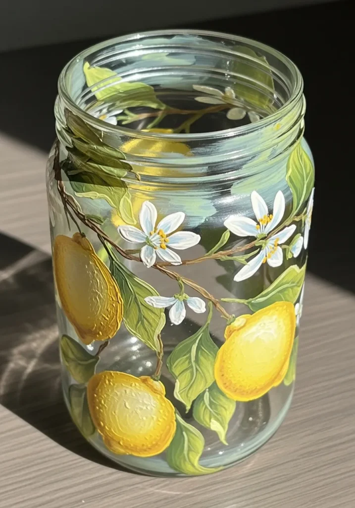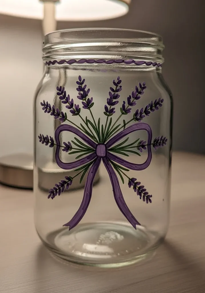 I am absolutely in love with how fresh and airy this looks compared to solid painted jars. It is a fantastic choice if you want to show off some colorful stones or even just a simple candle inside without hiding the contents. I found that painting on clear glass is a total breeze because you can actually tape a drawing inside the jar to use as a guide while you paint on the outside.