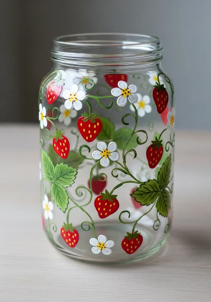 If you are looking for something that feels like a sunny day in a jar, then this is definitely the project for you. I think it is a total blast to paint because the strawberries are such simple shapes, but they look incredibly impressive once you add those tiny seed details. It is my favorite way to brighten up a windowsill, and it makes the perfect gift for a friend who loves that classic cottage aesthetic.