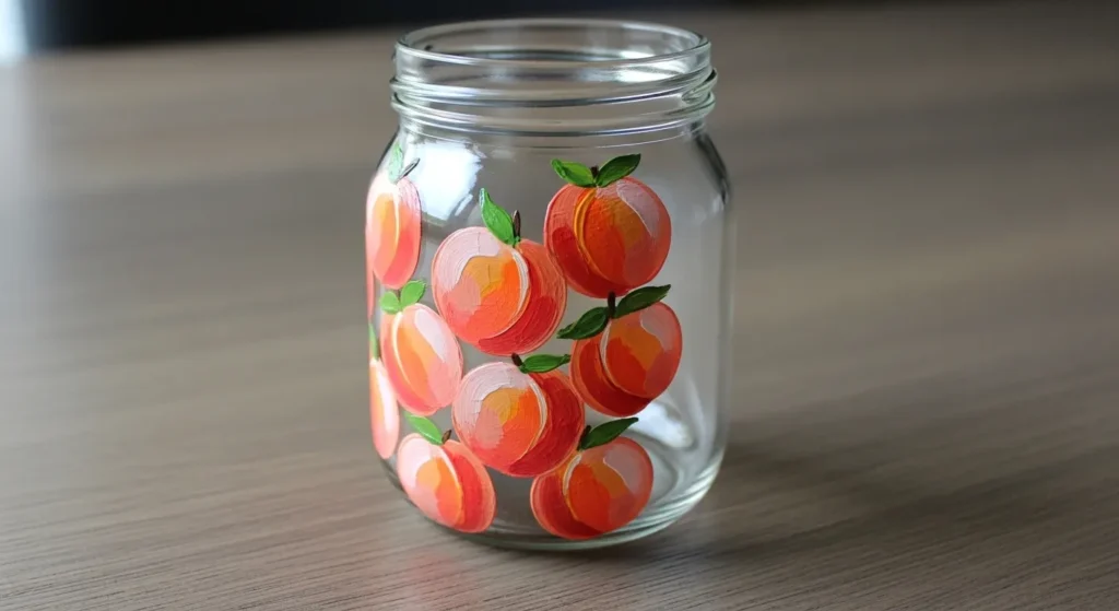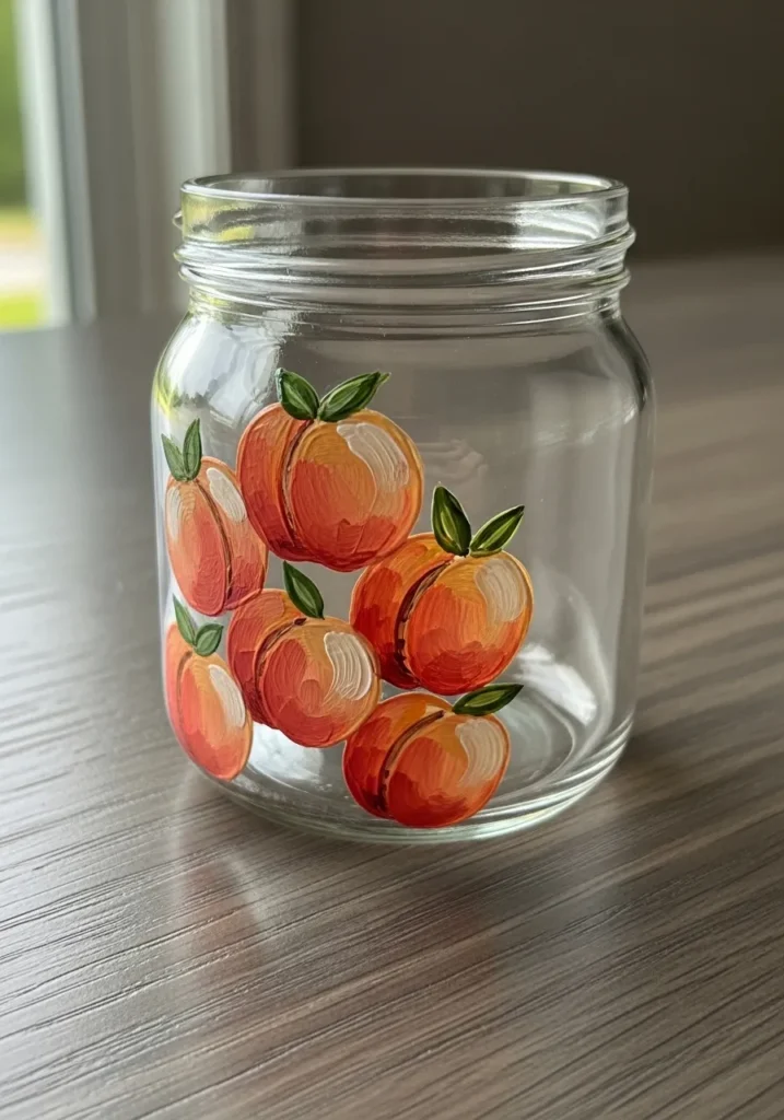 What I love about painting fruit is how it helps you practice soft, natural color transitions. You can start with a basic circle and then layer your oranges and pinks to get that fuzzy peach effect without needing complex tools. It is such a creative way to upcycle a plain jar into something that feels top-tier and perfectly coordinated with a cozy home aesthetic.