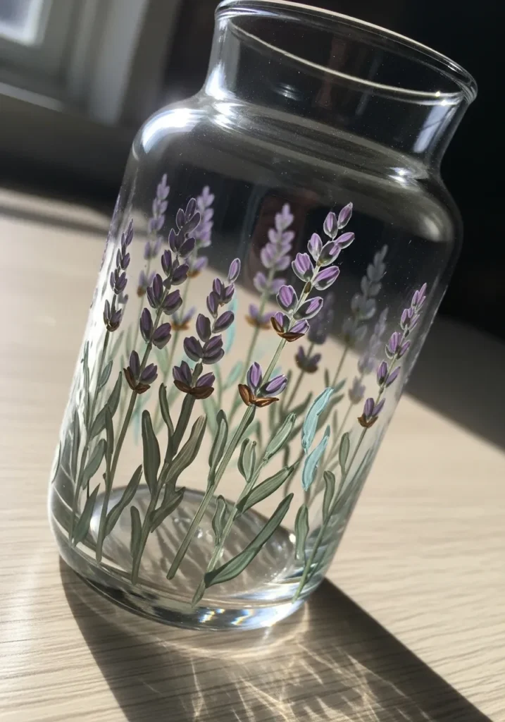 If you want a project that feels more refined, these lavender stems are an excellent choice for a quiet afternoon of painting. The repetitive motion of dabbing on the small buds is actually quite meditative and does not require a ton of complex detail to look beautiful. It is such a lovely way to turn a simple glass bottle into a piece of decor that looks like it came from a top-tier boutique.