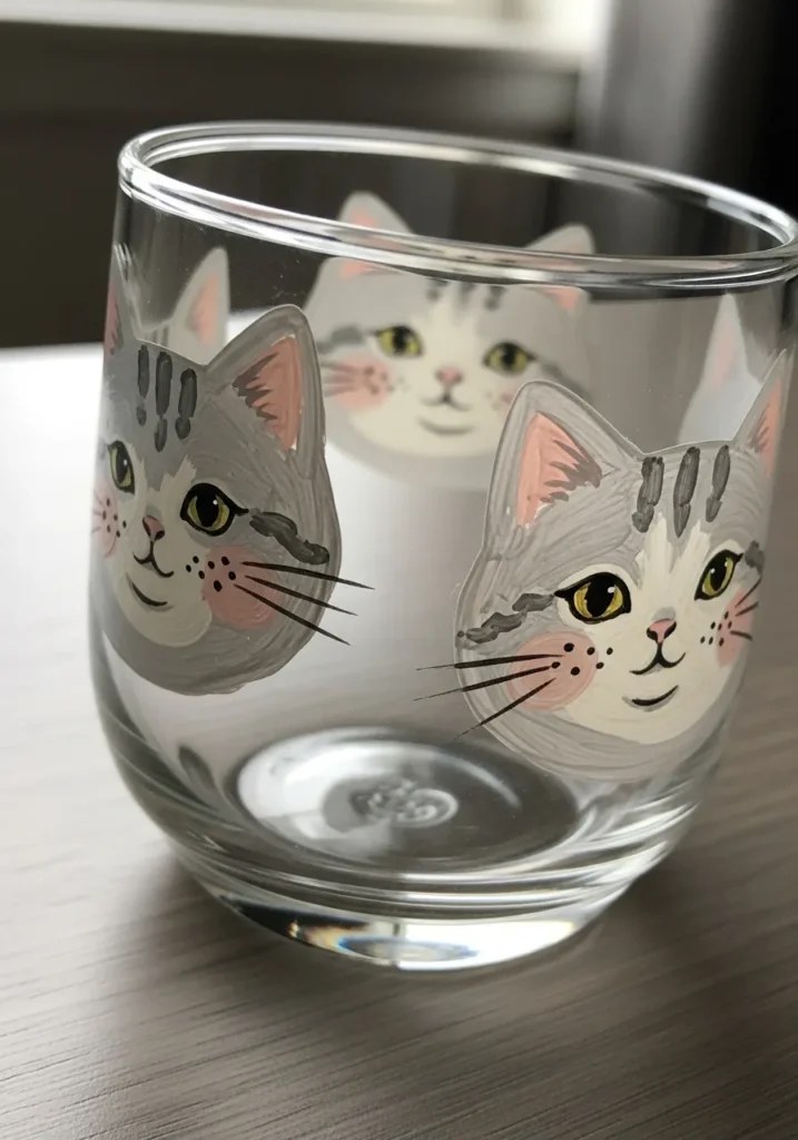 If projects that showcase your love for pets are your thing, this is a brilliant way to customize your glassware. I think the key to making these look so professional is focusing on those tiny details like the pink inner ears and the little freckles near the whiskers. It is a fantastic gift idea for the cat lovers in your life, and you can easily swap the colors to match the specific markings of your own furry roommates.