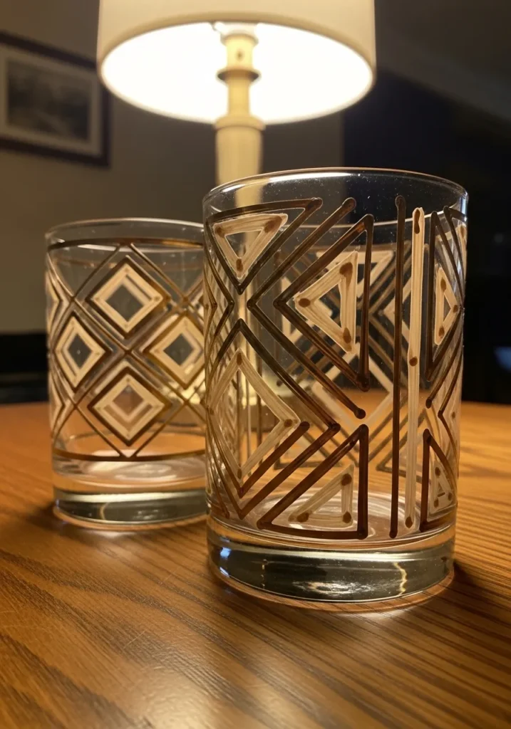I am a huge fan of using simple geometric lines because they are so easy to get right, even if you don’t have a steady hand. If you want to achieve this polished look, you can use painter’s tape to keep your lines crisp or just embrace the hand-painted charm of freehand strokes. It is such a creative way to turn a basic set of glasses into something that looks like it belongs in a fancy home decor magazine.