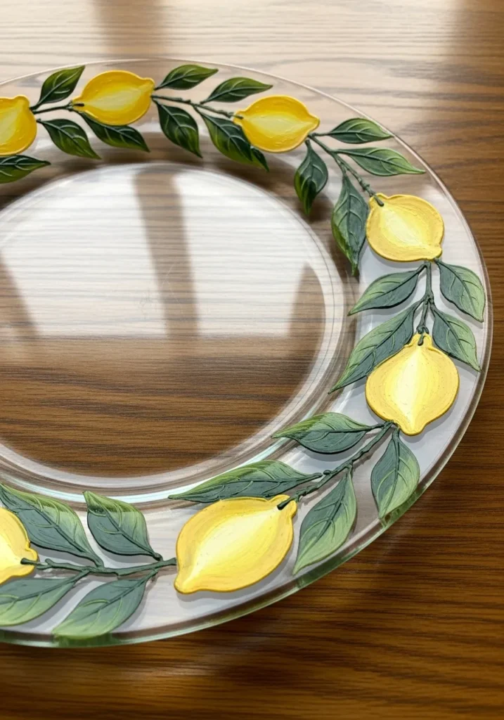 No matter the season, this citrus pattern brings an immediate sense of cheer and brightness to any table setting. Many people love how a simple fruit motif can make a plain piece of glassware feel like a designer find from a coastal boutique. The process of layering the yellows and greens is surprisingly therapeutic and allows for plenty of creative freedom with the leaf placement. It is a fantastic way to customize your serving dishes with a professional look that is both fresh and timeless.