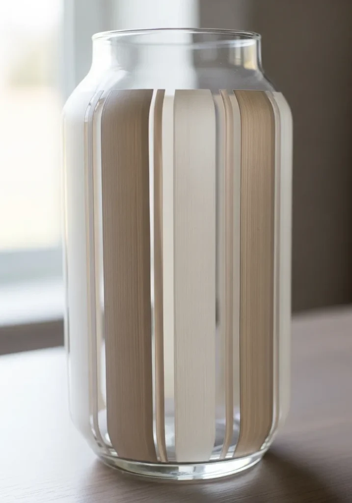 These vertical stripes are a brilliant way to achieve a very polished look with minimal effort. Some people love using painter’s tape to get those edges extra crisp, but I think there is something so charming about seeing the natural texture of the paint. It is a creative way to repurpose a simple glass container into a designer-style centerpiece that feels both fresh and timeless. This project is a great example of how a few neutral colors can make a massive impact on your home decor.