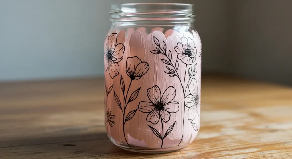 I am head over heels for how the gold centers make these pastel flowers pop. If you want a project that feels like a relaxing afternoon in a sunroom, this is definitely the one for you. Painting on clear glass is so rewarding because you can see how the colors play with the light from every angle. It is an easy way to turn a basic kitchen jar into a stunning vase or a fancy storage spot for your makeup brushes.