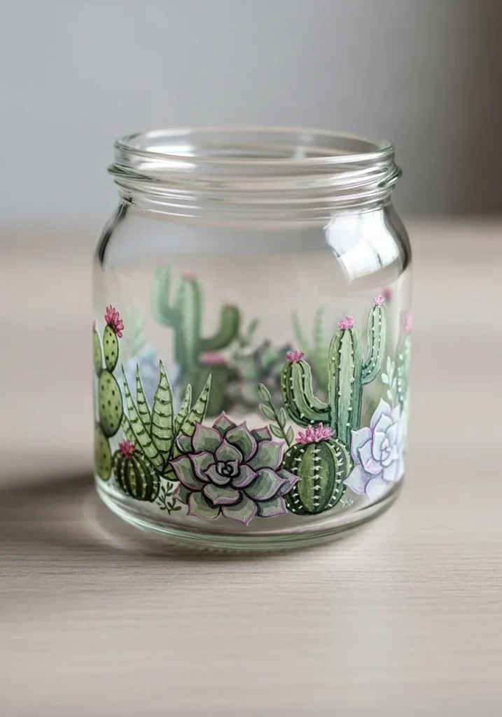 I am head over heels for how much life this little jar adds to a windowsill. If you’re a plant lover who lacks a green thumb, this is a genius way to enjoy the desert aesthetic without the risk of a wilting disaster. The different heights and shapes of the painted greenery create so much visual interest that you’ll want to rotate the jar every time you walk past it. It is such a rewarding project for anyone who enjoys getting lost in the tiny details of a painting session.