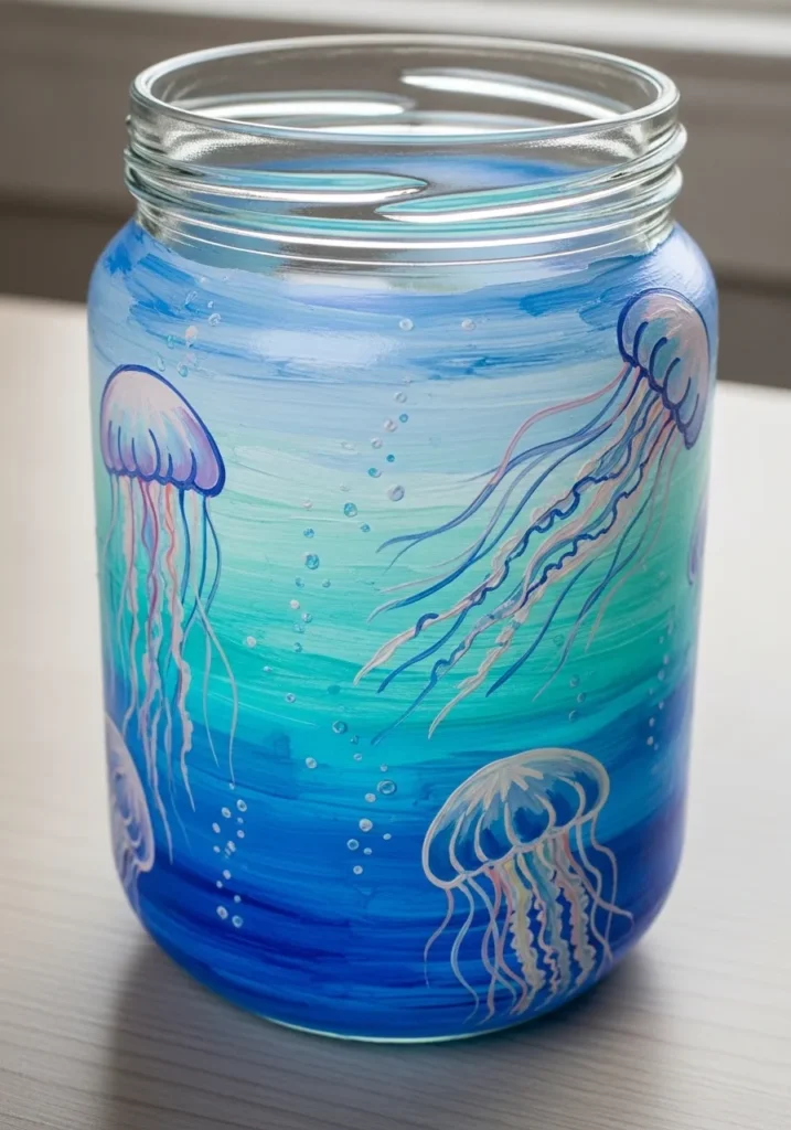 I am completely mesmerized by how serene and calming this aquatic design feels. If you’re into home decor that doubles as a mood booster, this ombre technique is a great skill to practice because it is much more forgiving than it looks. Painting these jellyfish is incredibly therapeutic since you can let your hand flow freely to create those trailing, curly tentacles. It is a fantastic way to turn a recycled jar into a unique nightlight or a coastal-themed vase that will definitely be a conversation starter.