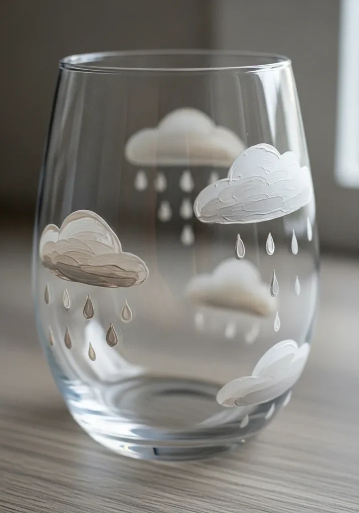 Even beginners will find this rainy day design approachable and enjoyable. I am really fond of how the limited color scheme makes these glasses look high end and boutique inspired without needing complex tools. It is a lovely project for a cozy afternoon at home and the finished product makes a thoughtful and stylish gift for someone who appreciates a clean minimalist vibe.