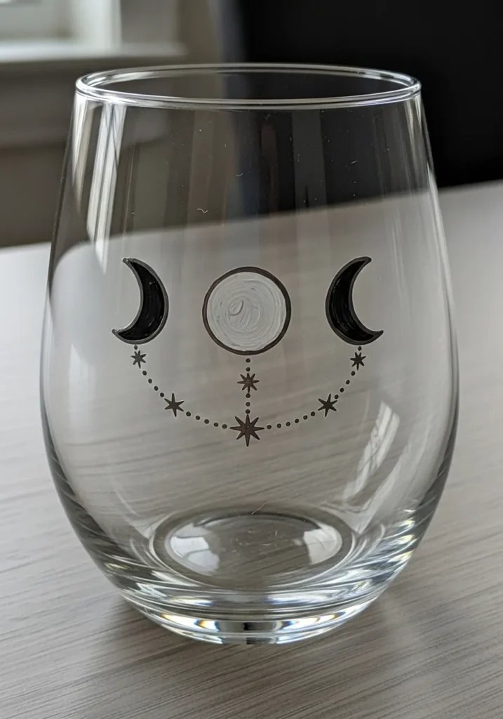 For anyone into stars and moons, this project gives your glassware a chic, celestial upgrade. I think the symmetry makes it feel very intentional and high end even though it only uses a few basic shapes and colors. It is an easy project to try if you want to practice your precision with a fine liner brush and the finished piece makes a dreamy gift for your favorite night owl.